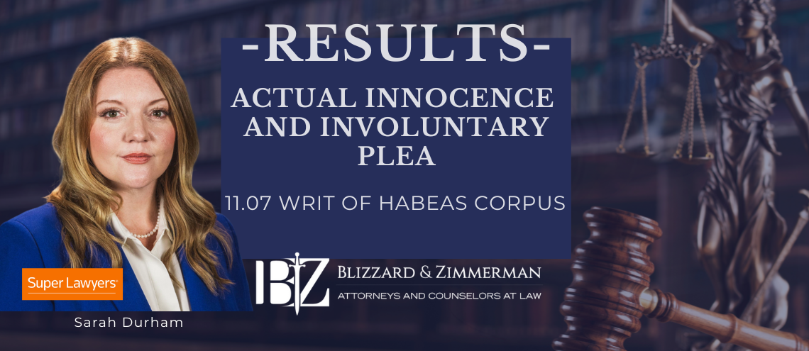 RESULTS: 11.07 Writ Successful – Actual Innocence & Involuntary Plea – A Victory for Justice On April 19, 2023, the Court of Criminal Appeals granted our client’s 11.07 writ of habeas corpus application on the grounds of actual innocence and an involuntary plea. In 2017, our client faced conviction for Failure to Register as a…