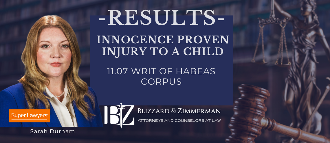 RESULTS: Criminal Appeal – Return to Probation At Blizzard and Zimmerman Attorneys, we stand firmly by our clients, ensuring they receive the justice they deserve. Recently, our criminal appeal attorneys, Jacob Blizzard and Sarah Durham, successfully handled a case where a client was returned to probation after a year-long wait for the Texas Court of…